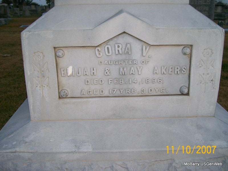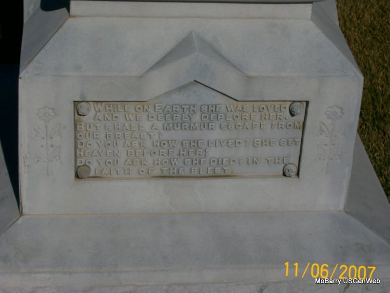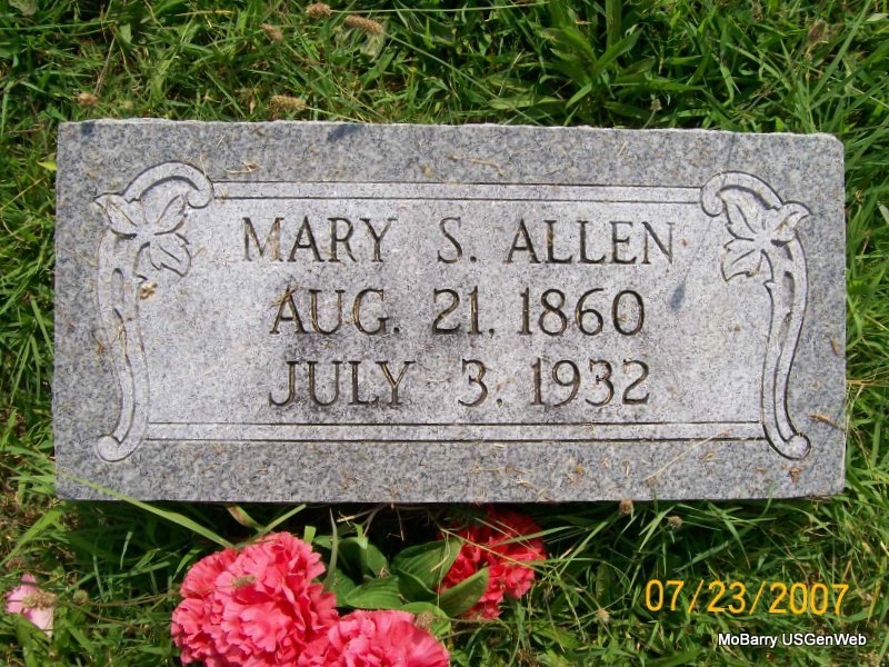 | ALLEN, Malinda C. (HARGROVE) | July 7, 1859 | Nov. 27, 1921 Mt. Vernon, Lawrence Co., MO |