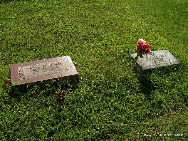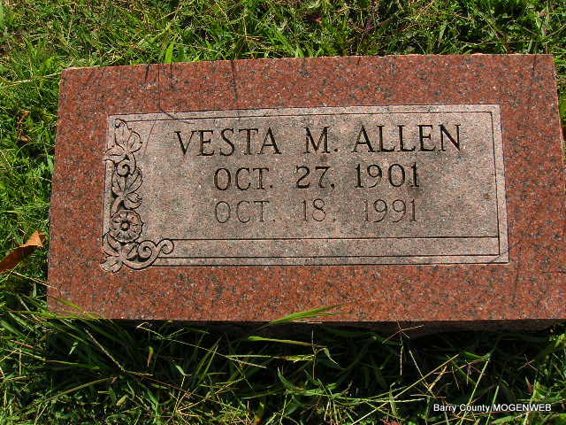 | ALLEN, Vesta Mae (KELLEY) | Oct. 27, 1901 | Oct. 18, 1991 | Research Note: Roy McCormack purchased the cemetery lot. Wife of Roy Courtney Allen. - Another Photo | Note Donna Cooper Photo Connie Schmidt |