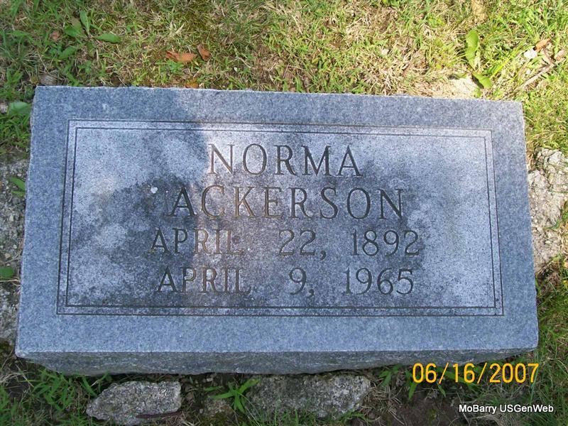 | ACKERSON, Norma | Apr. 22, 1892 Monett, MO |