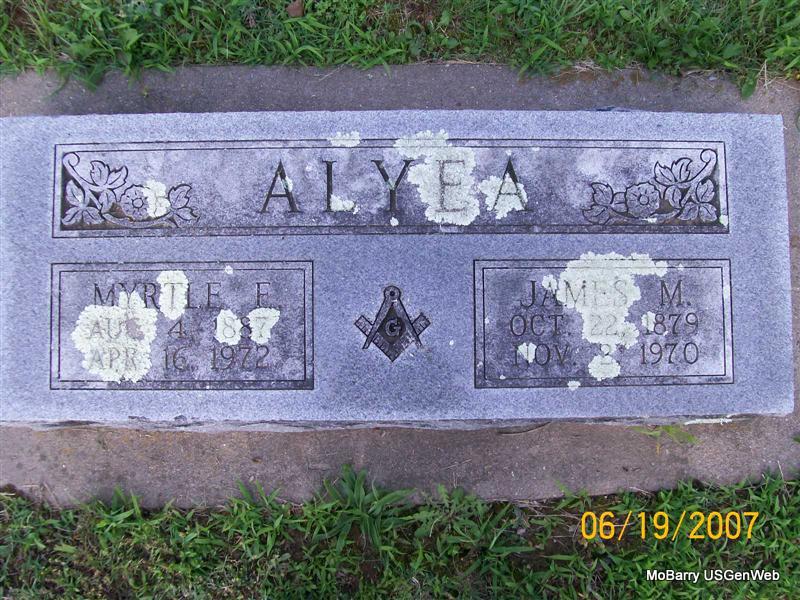 | ALYEA, Clarence | No Date | Mar. 20, 1978 | Research Note: The City of Monett has that this person is buried in the old section in block 14, lot 2, grave 1. Oscar Hines purchased the lot and Bennett Wormington was the undertaker. Buried next to Fern Alyea. Son of James M. Alyea and Myrtle Underwood. NO STONE | Note Donna Cooper Census Phyllis Long |