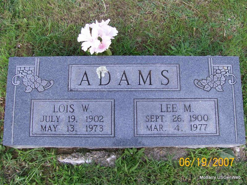 | ADAMS, Lois W. | July 19, 1902 | May 13, 1973 | SSW: Lee M. | Photo Jay Trace |