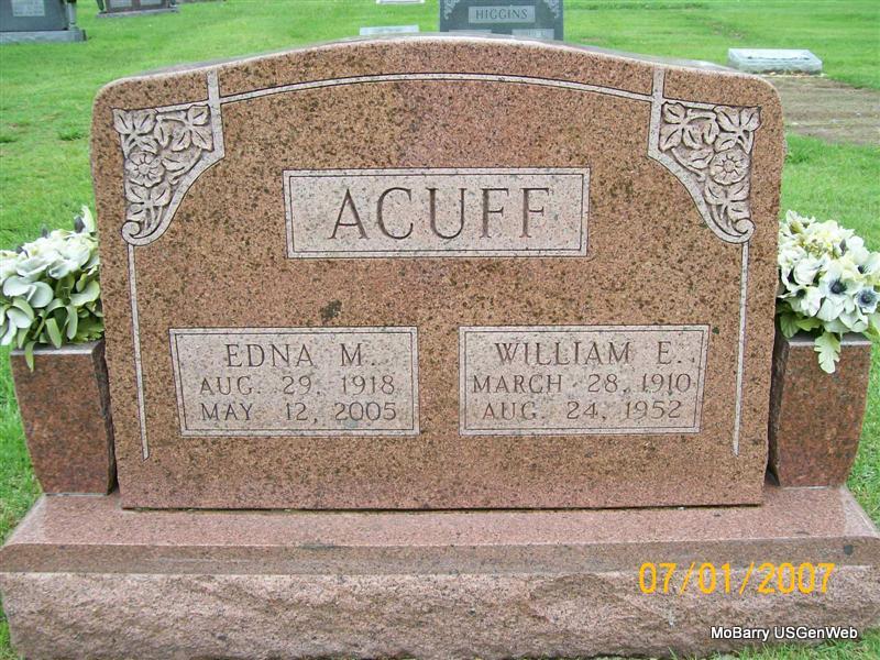 SSW: William E. - Research Note: She was a Joseph and Ida (Haworth) King. Edna Acuff, age 86, of Monett, died May 12, 2005, at the Cox Monett Hospital following a sudden illness. She was born August 29, 1918, in McDowell. She was a retired school teacher, having been employed by the Pierce City R-2 school district for 32 years, retiring in 1985. She married William Eugene Acuff, and he preceded her in death in August of 1952. | Monett Times Donna Cooper Photo Jay Trace |