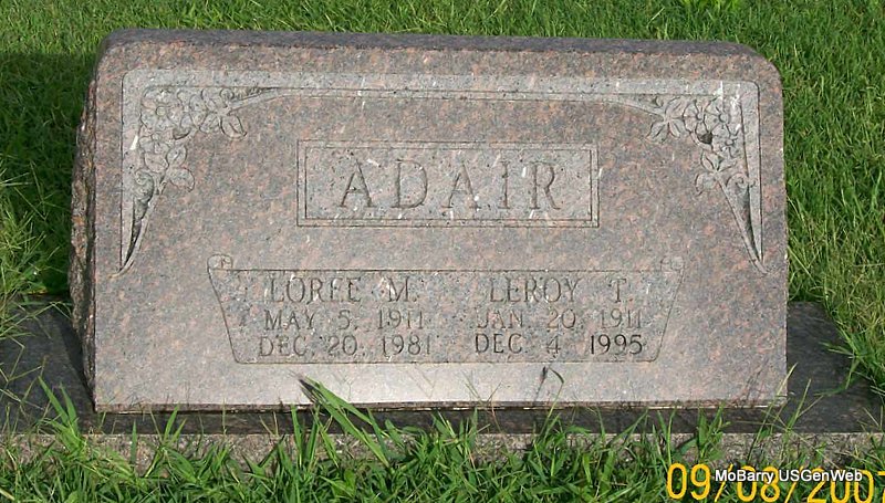 | ADAIR, Loree M. (MUSTAIN) | May 5, 1911 | Dec. 20, 1981 | SSW: Leroy T. | Photo Jay Trace |