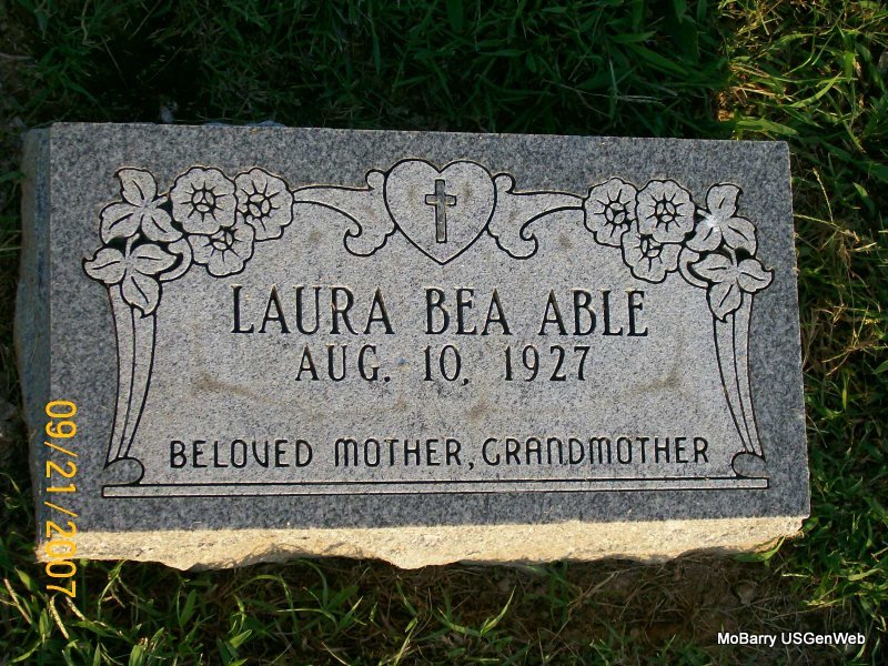 Inscription: "Beloved Mother, Grandmother" - Research Note: Daughter of John and Zora (Karr) Hartness. She united in marriage to Robert Able on March 9, 1967. He preceded her in death in 1984. Laura was a line worker for Armour's in Monett. | Bennett-Wormington Funeral Home Phyllis Long Photo Jay Trace |