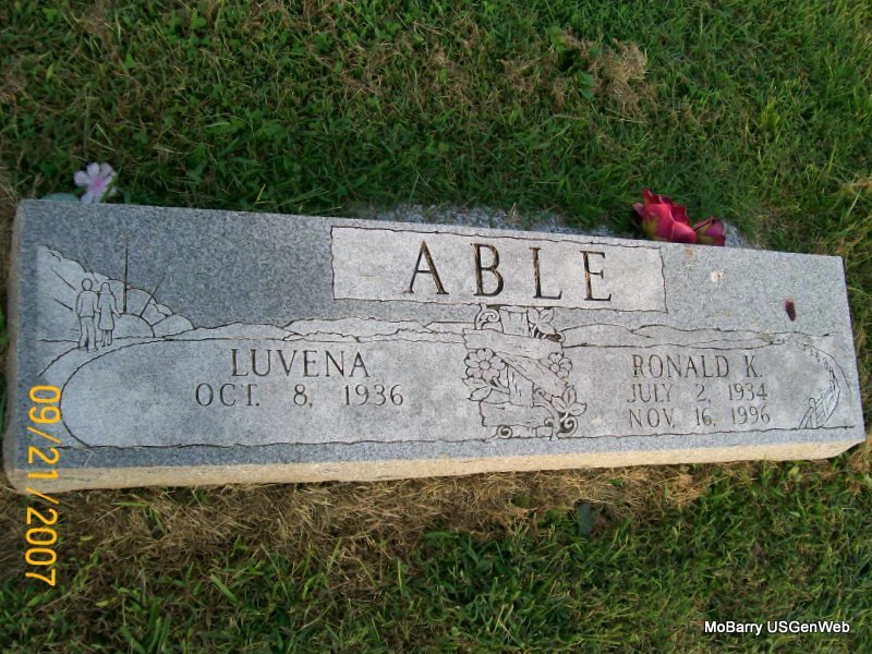 | ABLE, Ronald K. | July 2, 1934 | Nov. 16, 1996 | SSW: Luvena - Research Note: He was a son of Jake and Zelma (Mullins) Able. | Census Donna Cooper Photo Jay Trace |