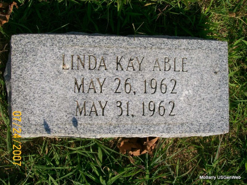 | ABLE, Linda K. | May 26, 1962 St. Vincent's Hosp., Monett, Barry Co., MO |
