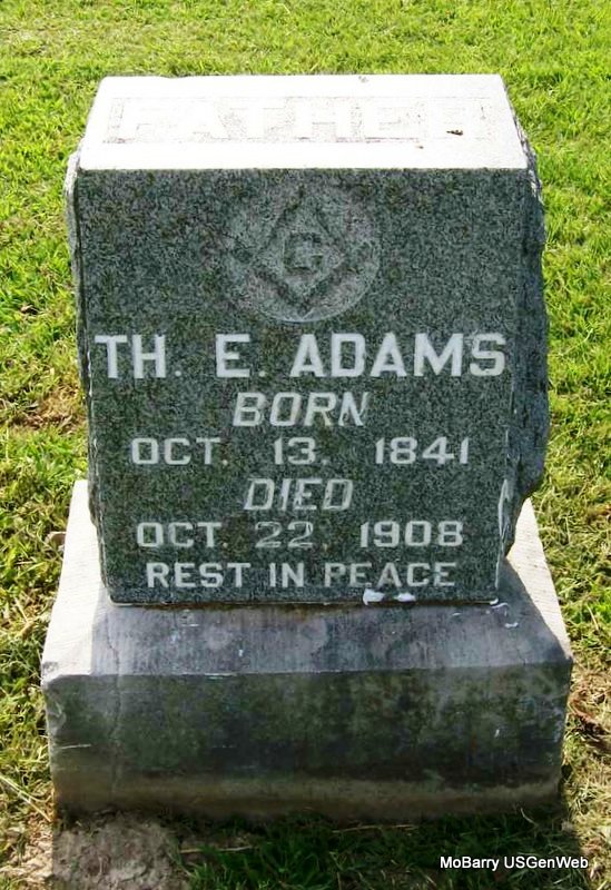 | ADAMS, Thomas Edward | Oct. 13, 1841 | Oct. 22, 1908 3rd Street, Monett, Barry Co., MO |