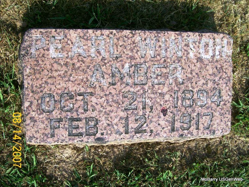 Research Note: Wife of William Joseph Amber. She is buried next to Anna B. Winton and W. A. Winton. Diana's Note: At the time of her death she was age 22 years, 3 months, 19 days and died of pulmonary tuberculosis following pneumonia. Her father was given as Wiley A. Winton, born TN and her mother as Anna B. Killingsworth, born MO. The informant was Sue Winton, Monett, MO and the Death Certificate Number: 6561 Resource: Death Certificate - Diana's post had Lena's birth date from the death certificate as Oct. 22, 1894, which is different from the date on the stone. | Note Donna Cooper Note Diana (Anderson) Cope Photo Jay Trace |