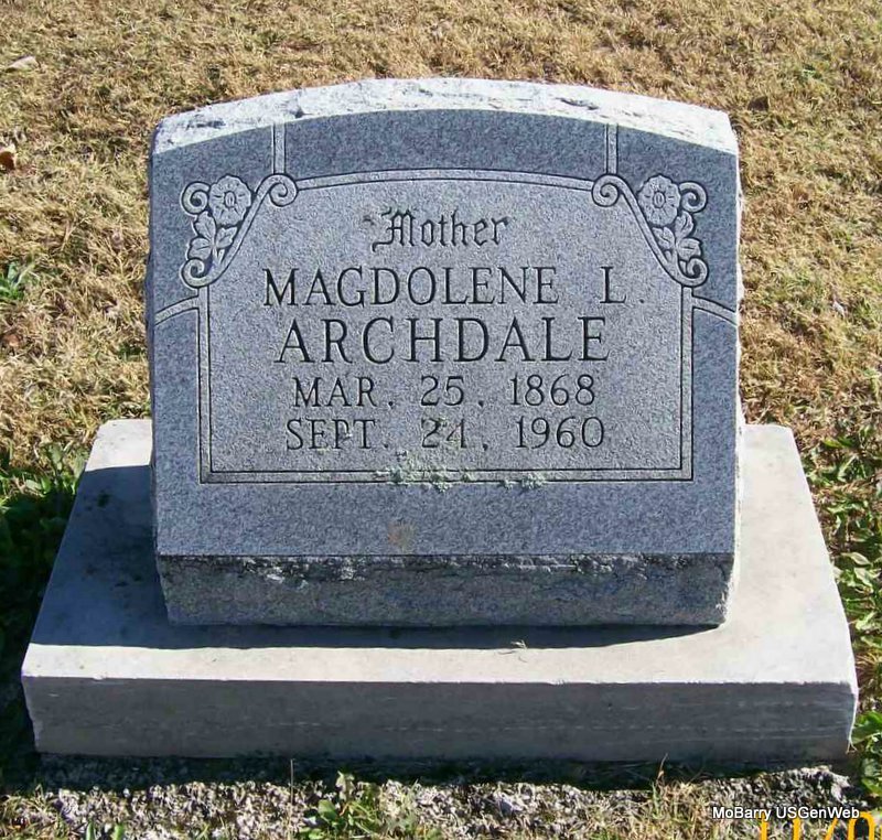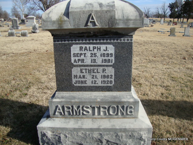 | ANDERSON, Alice L. (ELWELL) | Jan. 25, 1902 | Dec. 5, 1982 | SSW: Troy A. - Inscription: "Married Sept. 23, 1923" - Research Note: Troy Anderson married Alice Elwell on Sept. 28, 1923 in Lawrence Co., MO. Daughter of Samuel O. Elwell and Samantha Ellen Atkinson. | MO Marriage Records Census Phyllis Long Photo Jay Trace |