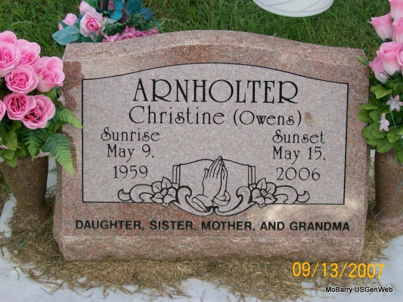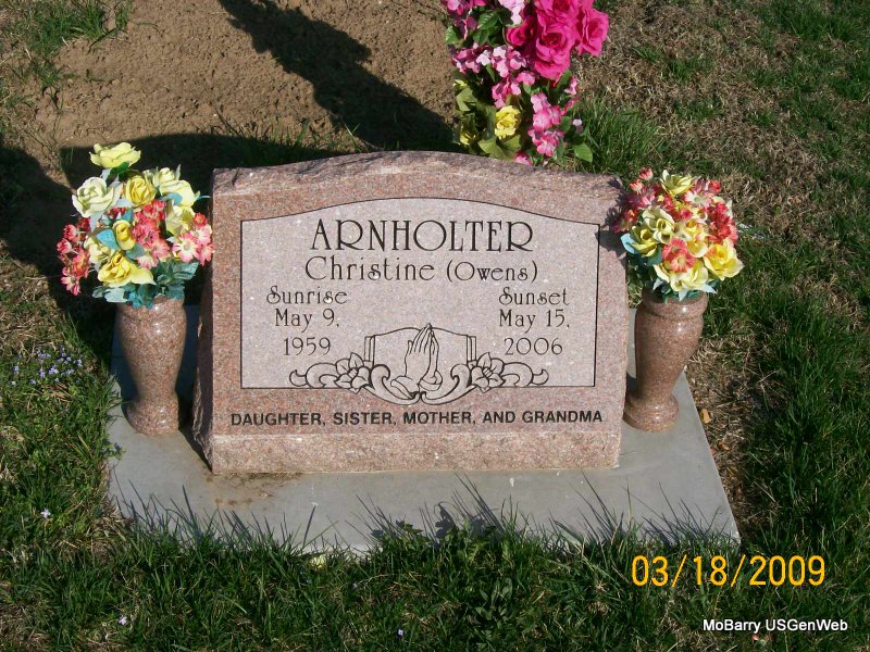 Research Note: She was the daughter of Aubrey B. and Neva Mabel (Armstrong) Means. She was preceded in death by one son, Gary Aylsworth; and one brother, Aubrey Means. Donna's Note: She was a secretary and a member of the New Site Church. Her obit reads that she was born in 1927 and her stone reads she was born in 1928. - Back of Stone | Note Donna Cooper Monett Times Mar. 4, 2008 Photos Jay Trace |