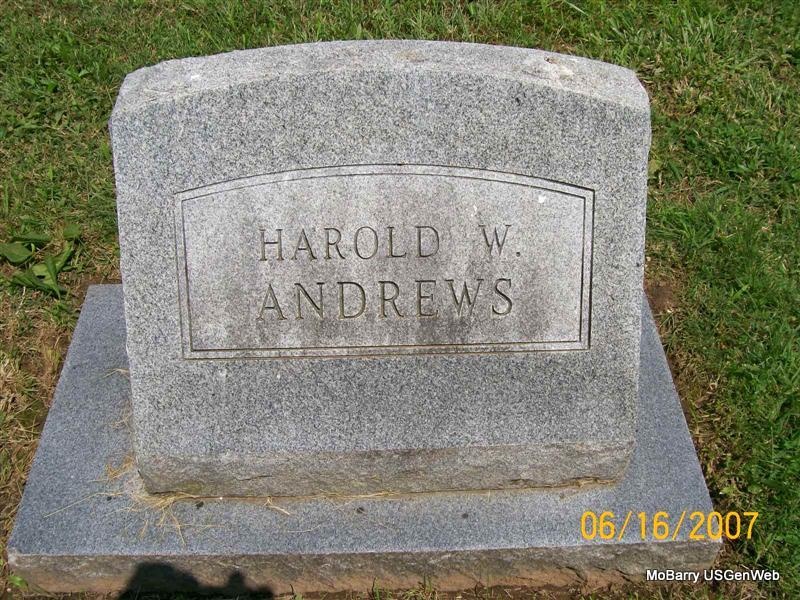 Research Note: According to his death certificate, his parents were James Robert and Meda Ann (Vaught) Andrews. He was a switchman on the railroad. Charles A. Andrews, age 19, married Myrtle E. Link, age 18, on Sept. 11, 1892 in Barry Co., MO. James A. Swindel vouches for the age of Myrtle E. Link. James R. Andrews, the father of Charles A. Andrews, gave consent. At age 22, Charles second married Rose E. Clinton, age 20, on Nov. 4, 1894 in Monett, Barry Co., MO. | Death Certificate Donna Cooper MO marriage Records Phyllis Long Photo Jay Trace |