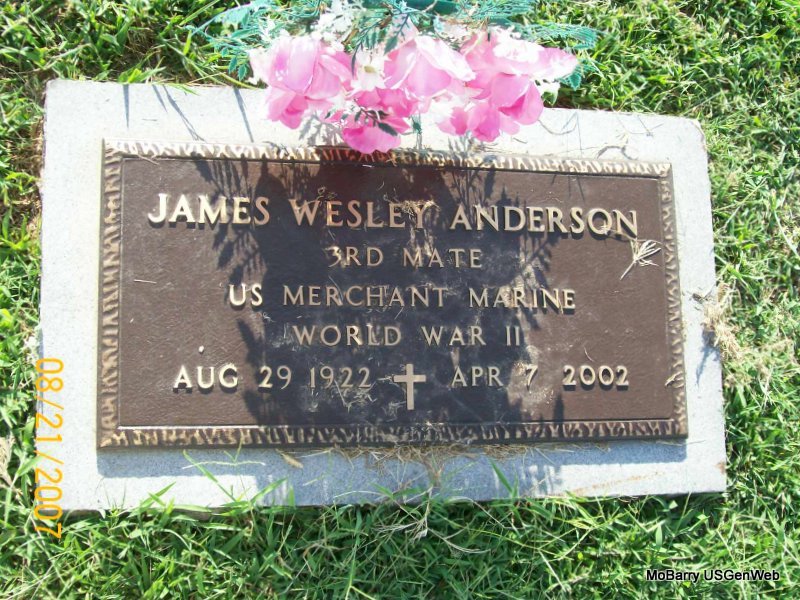 | ANDERSON, James Wesley | Aug. 29, 1922 | Apr. 7, 2002 | Inscription: "3RD MATE US MERCHANT MARINE WORLD WAR II" | Photo Jay Trace |