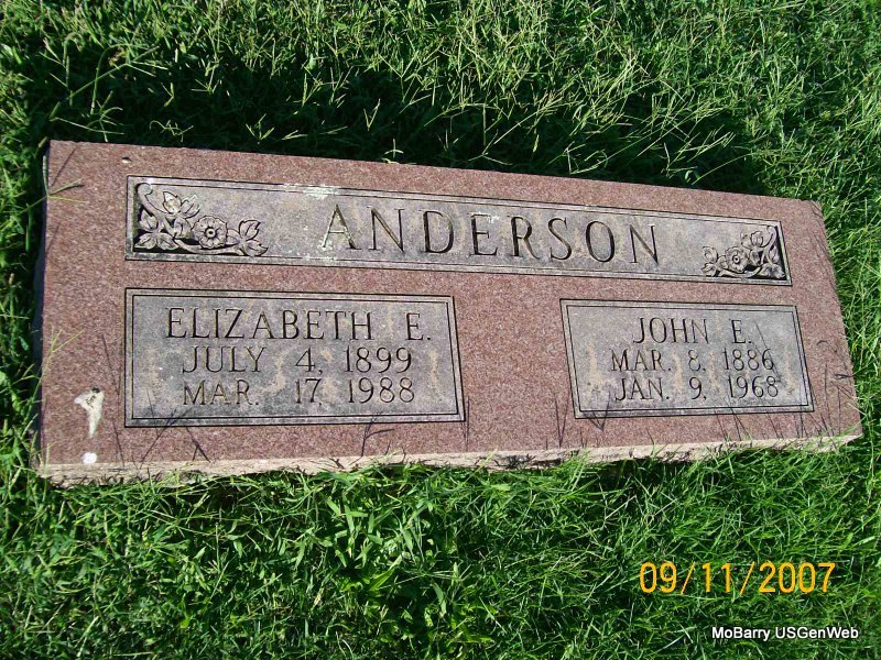 | ANDERSON, Elizabeth E. | July 4, 1899 | Mar. 17, 1988 | SSW: John E. | Photo Jay Trace |