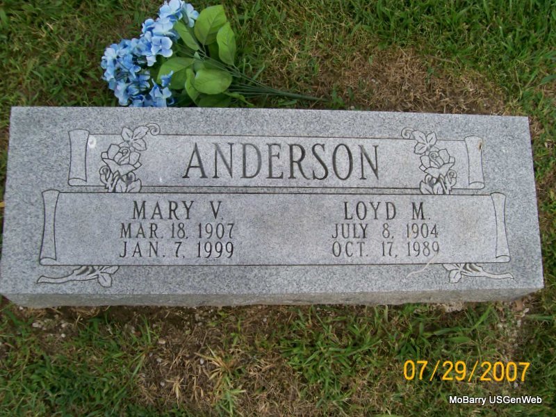 | ANDERSON, Mary V. | Mar. 18, 1907 | Jan. 7, 1999 | SSW: Loyd M. | Photo Jay Trace |
