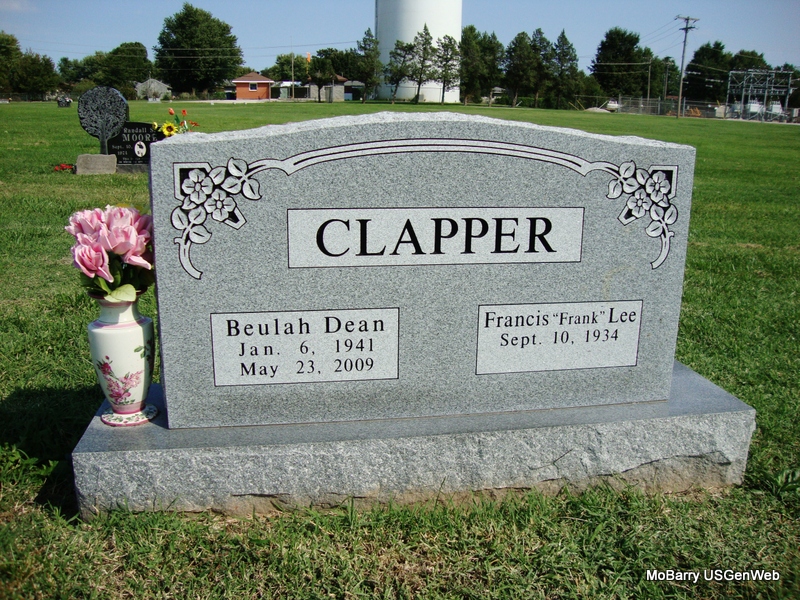 SSW: Beulah Dean - Research Note: He was the son of the late Frank and Velma Clapper. Frank served his country honorably during the Korean War. He was discharged from the United States Marine Corps in February of 1956. For many years, Frank worked as a Mechanic for many of the local dealerships and shops in Monett. On July 13, 1957, Frank married Beulah Dean Maggard in Miami, OK. She preceded him in death on May 23, 2009. Also preceding him in death were four brothers, Robert, Gary, Glen and John Clapper; and one sister, Jeanne Gayle Johnson. He is survived by four sisters. | Buchanan Funeral Home Phyllis Long Photo Connie Schmidt |