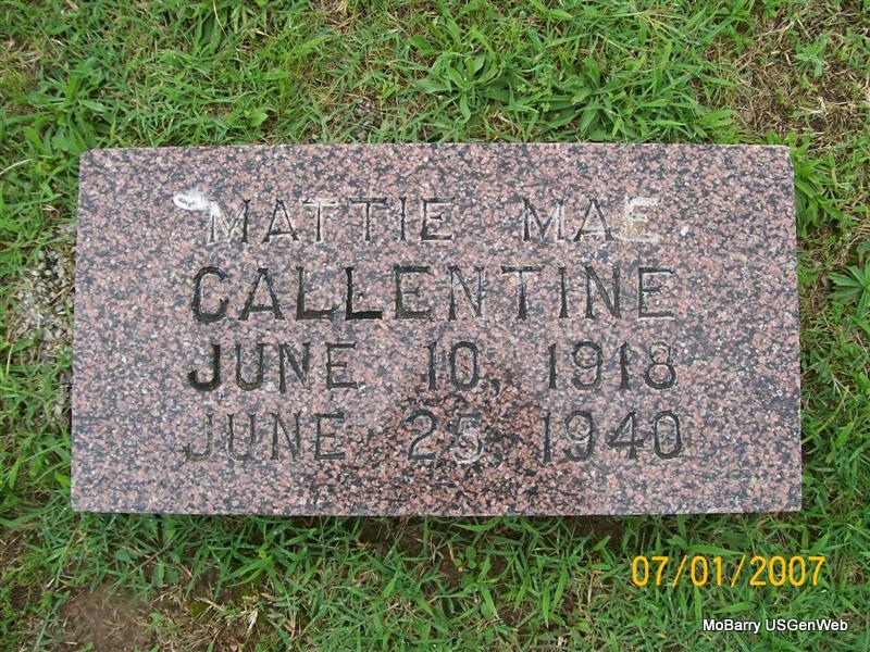 | CALLENTINE, Mattie Mae (SISSON) | June 10, 1918 Monett, Barry Co., MO |