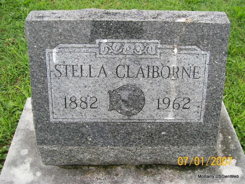 Research Note: Daughter of Jorden Claiborne and Tabitha Murray. Katie Hendricks of Monett, MO was the informant on the death certificate. Stella Claiborne, age 23, married Fred G. Folger, age 25, on Oct. 14, 1906 in Monett, Barry Co., MO. 1930 Census, she is divorced. - Another Photo | Death Certificate MO Marriage Records Phyllis Long Photo Donna Cooper Photo Jay Trace |