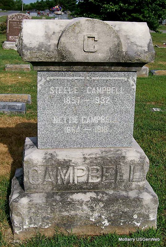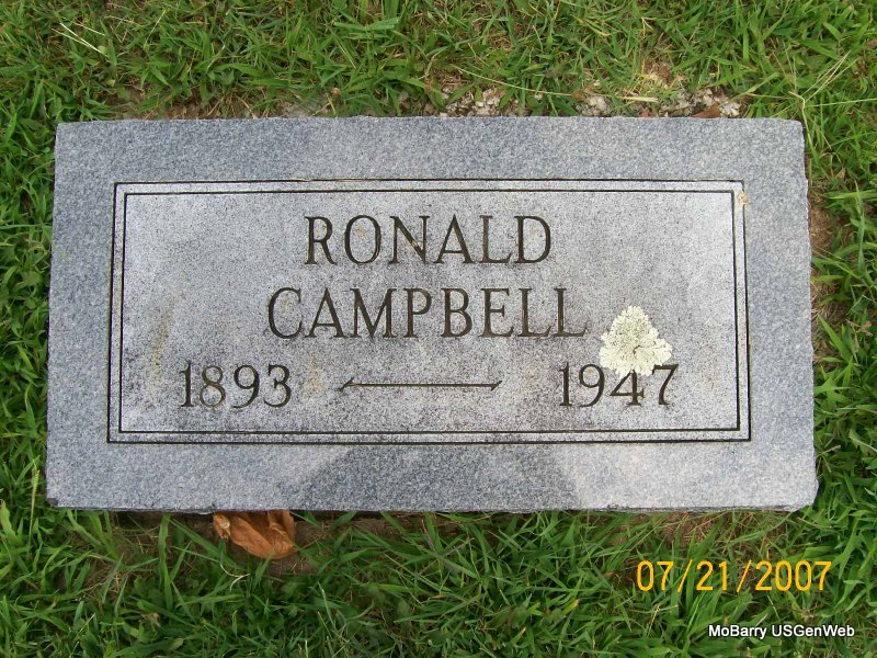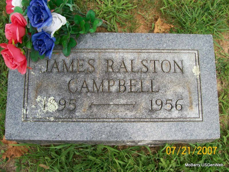 Research Note: Entered from Log book. Buried in the Old Section, Block 14, Lot 4, Grave 1. Lot owned by J. F. Campbell. He was buried on Feb. 19, 1932. The cemetery log does not list that this person is without a stone. He was a retired merchant. Son of William Campbell and Pauline Tisley? both born IN. POSSIBLY NO STONE - Cassville Democrat, December 9, 1905 - Campbell Bros. Fined: The case of State vs. John and James Campbell charged with exposing goods, wares and merchandise on Sunday, Judge Gray ruled that the sale of chili, ice cream, ice cream soda, lemonade or anything that might be prepared to eat would not be unlawful. Canned goods cannot be sold. Jas. Campbell was convicted for selling 3 lemons and was fined $1.00. The case was appealed to the Court of Appeals. All the other cases against Campbell Bros. were continued until the higher court passes on the case appealed. The Judge held that cigars, tobaccos and candies, lemons, oranges, and canned goods were merchandise and could not be sold. | IOOF Log Book Death Certificate Online Newspapers Phyllis Long |