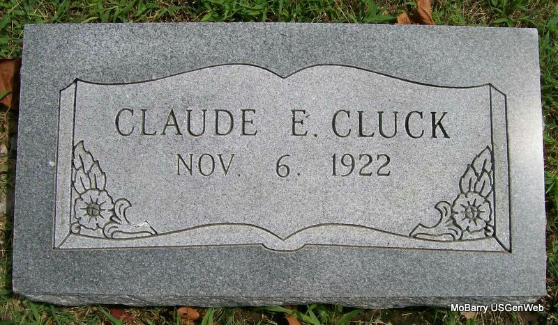 Research Note: He was the son of Sam and Maude Cluck. He was retired from the Frisco Railroad, was a member of the Railroad Retirement Club, the Transportation International Union and Macedonia Free Will Baptist Church in Purdy. He married Pluma Atwell on November 20, 1942 in Chester, AR. He was preceded in death by one son, Dowell Cluck; one brother and four sisters. - Claude Edward Cluck, age 40, married Pulma Mae Atwell, age 36, on Sept. 28, 1963 in Mt. Vernon, Lawrence Co., MO. | Buchanan Funeral Home MO Marriage Records Phyllis Long Photo Jay Trace |
