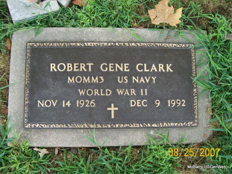 Inscription: "MOMM3 US NAVY WORLD WAR II" - Research Note: Son of Benjamin Clark and Hassie Marie Hedge. | Census Phyllis Long Photo Jay Trace |