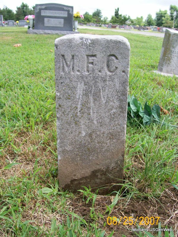 | M. F. C. | No Date | No Date | Research Note: The cemetery log book has this person indexed in the "M" section, but the last name apparently starts with "C". This person is in the old section, in block 96 in a single lot in grave 2 and is logged without dates and with any record of who purchased the lot. | Note Donna Cooper Photo Jay Trace |