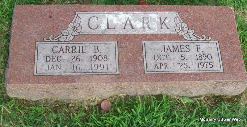 | CLARK, James F. | Oct. 5, 1890 | Apr. 25, 1975 | SSW: Carrie B. - Research Note: Son of Marion A. Clark and Martha J. Wade. | Census Phyllis Long Photo Jay Trace |