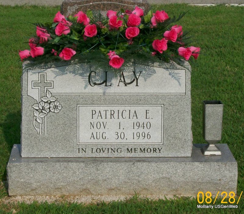 | CLAY, Patricia E. | Nov. 1, 1940 | Aug. 30, 1996 | Inscription: "In Loving Memory" | Photo Jay Trace |