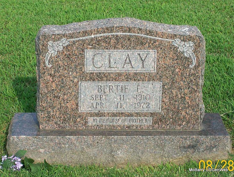 | CLAY, Bertie E. | Sept. 11, 1910 | Apr. 11, 1972 | Inscription: "In Memory of Mother" - Research Note: Wife of Henry Franklin Clay. | Census Phyllis Long Photo Jay Trace |