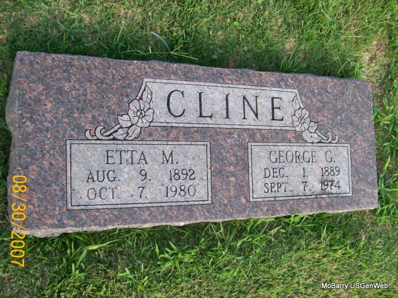 | CLINE, George Grover | Dec. 1, 1889 | Sept. 7, 1974 | SSW: Etta M. - Research Note: Son of Harvey E. Cline and Jessie J. Finley. | Census Phyllis Long Photo Jay Trace |