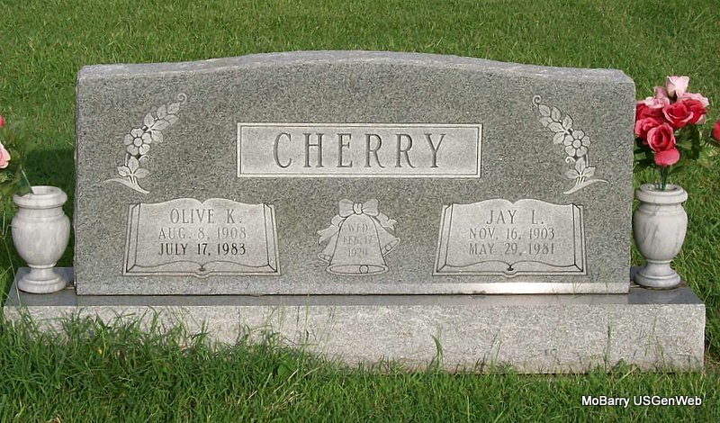 | CLINE, Etta M. | Aug. 9, 1892 | Oct. 7, 1980 | SSW: George C. - Research Note: Etta Martin, age 17, married George G. Cline, age 20, on Jan. 21, 1910 in Aurora, Lawrence Co., MO. Daughter of Jobe Martin and Mecie Bouyer. There were 2 transcriptions for Jobe and Mecie's marriage record with 2 different spellings of Mecie's maiden name, Bowyear and Bougear. Bouyer is given at ancestry.com. | MO Marriage Records Census Phyllis Long Photo Jay Trace |