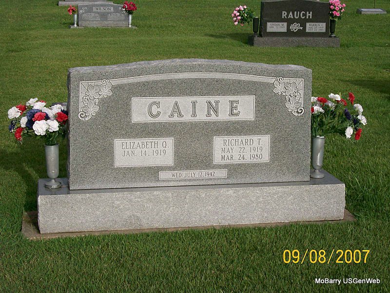SSW: Richard T.- Inscription: "Wed July 12, 1942" - Research Note: She was a long-time Monett resident before moving to Wylie 10 years ago. She was a member of the First United Methodist Church, Monett, and sang in the church choir and taught Sunday school. She taught kindergarten in the Mt. Vernon school system for 18 ½ years. Betty was preceded in death by her husband, Richard Caine, and a son, Steven Caine. She is survived by 2 sons. | Buchanan Funeral Home Phyllis Long Photo Jay Trace |