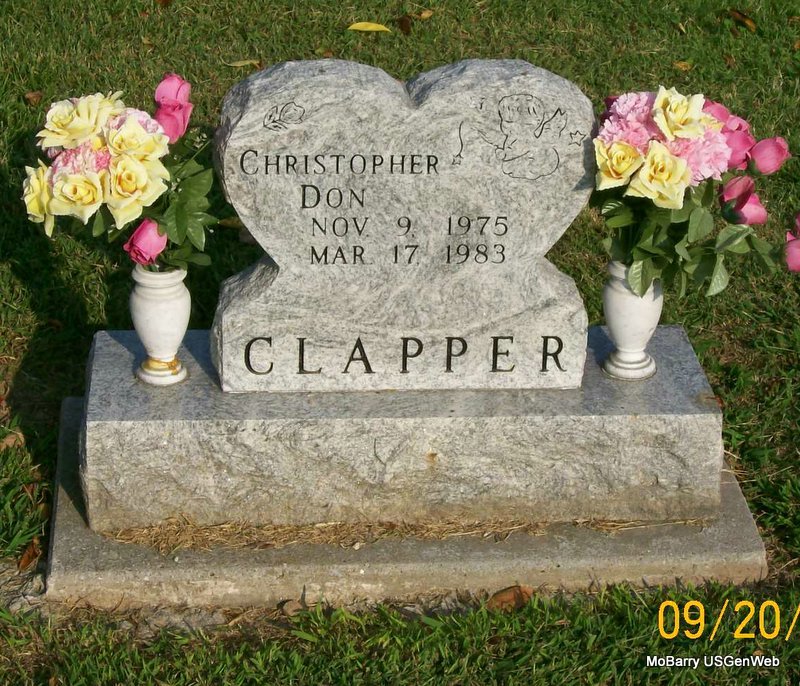| CLAPPER, Christopher Don | Nov. 9, 1975 | Mar. 17, 1983 | Research Note: SSDI gives his last residence as Columbia, Boone Co., MO. | SSDI Phyllis Long Photo Jay Trace |