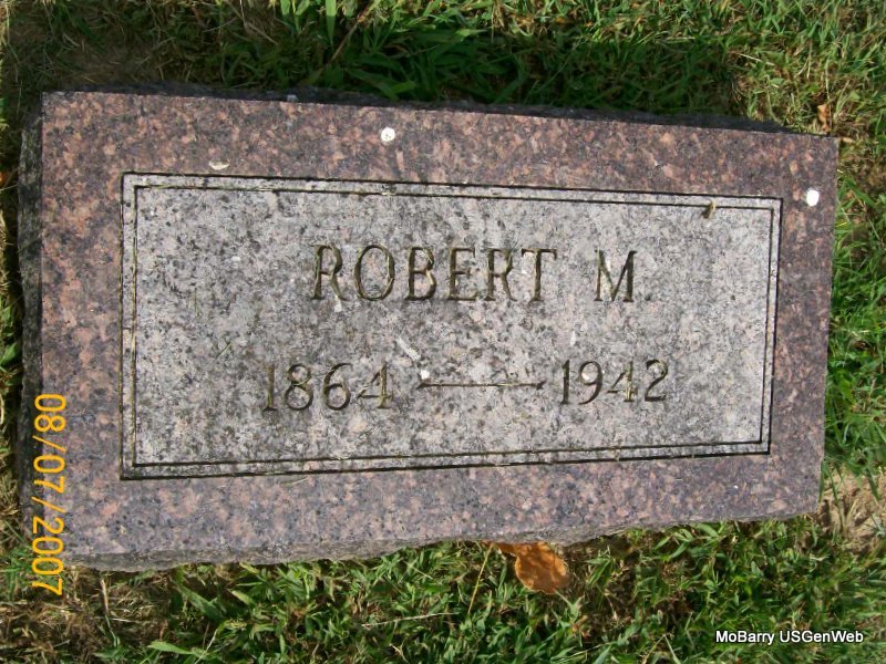 Research Note: His death certificate reads that Minnie Jane Callaway was his wife. He was a retired furniture and undertaker. His father was Return John Farrar Callaway and his mother Julia Ann Castilla, both born in Cleveland, TN. Cause of death was given as cerebral apoplexy, hemiplegic. Mrs. R. M. Callaway, 517 Frisco Ave, Monett, MO, was the informant. Robert Callaway, his death certificate lists his name as Robert Meggs Callaway. Ruth's Note:The spelling was incorrect on the certificate. It should be Robert Meigs Callaway. Col. Return Jonathan Meigs, Rev. War hero and War Department Agent to the Cherokees in Eastern TN was his 2nd gt. grandfather. - Callaway Plot Stone - Callaway Plot Stone - Another Photo | Note Ruth Kent Photos Death Certificate Donna Cooper Photo Jay Trace |