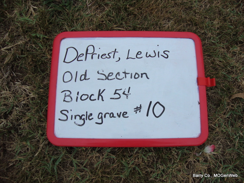 | DEPRIEST, Lewis | No Date | No Date | Research Note: Entered from the Log book. Buried in the Old Section, Block 54, Single Lot, Grave 10. No other information. - Photos show where grave is located. - Plot Photo | IOOF Log Book Phyllis Long Photos Connie Schmidt |