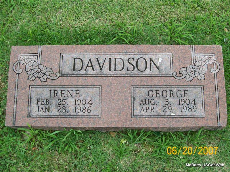| DAVIDSON, Irene | Feb. 25, 1904 | Jan. 28, 1986 | SSW: George | Photo Jay Trace |