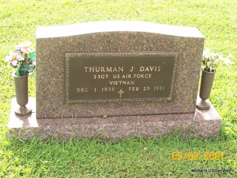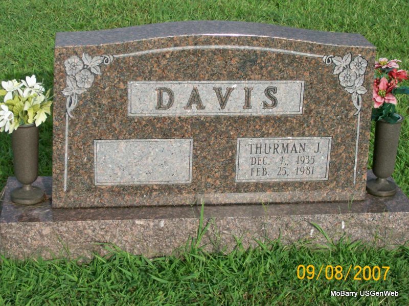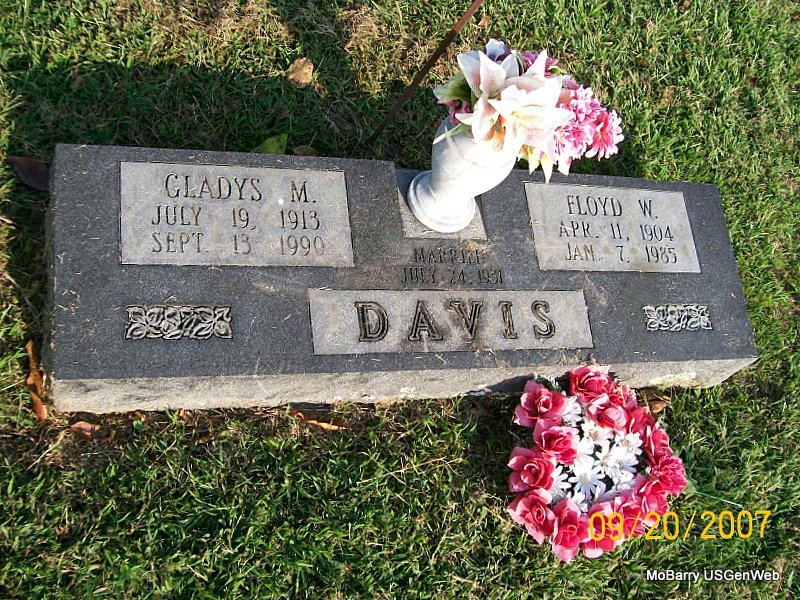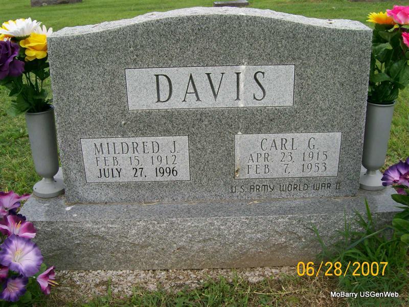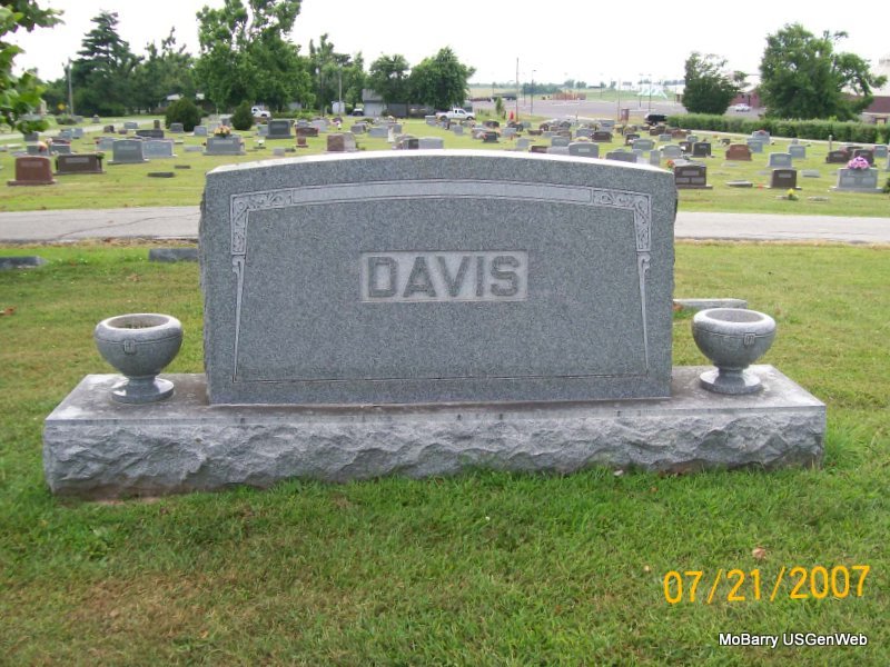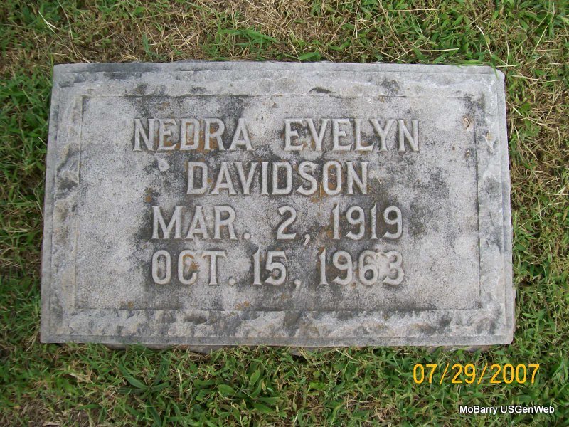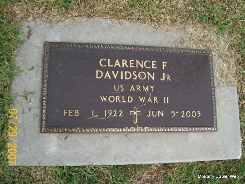 Inscription: "US ARMY WORLD WAR II" - Research Note: He was the son of Clarence F. Davidson Sr. and McDena (Smith) Davidson. He was an Army veteran of World War II and worked as a communication maintainer for St. Louis-San Francisco Railway Company. He married Nedra Bump, and she preceded him in death. - Davidson Plot Stone | Monett Times Phyllis Long Photo Jay Trace |