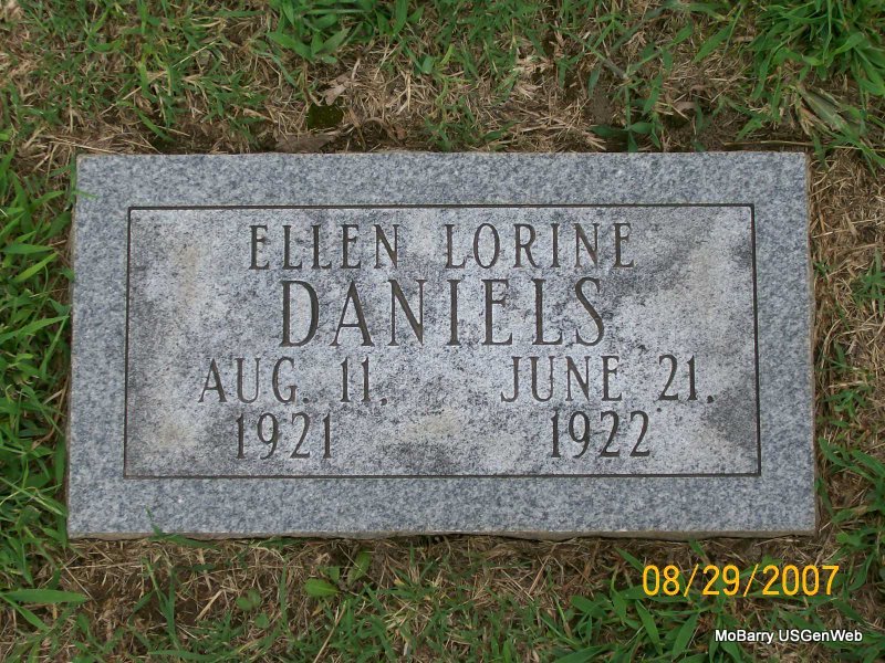 | DANIELS, Ellen Lorine | Aug. 11, 1921 Monett, Barry Co., MO |