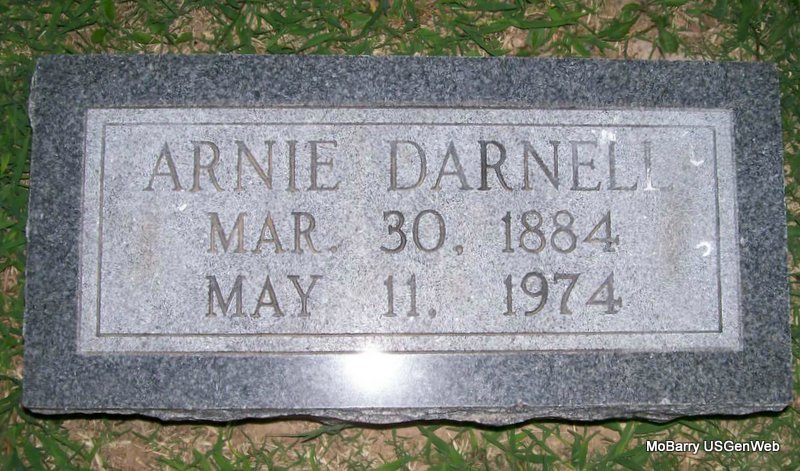 | DARNELL, Arnie | Mar. 30, 1884 | May 11, 1974 | Research Note: His wife was Flora Perry. | MO Marriage Records Phyllis Long Photo Jay Trace |