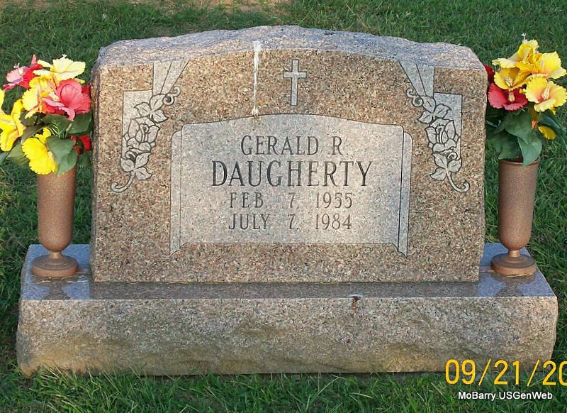 | DAUGHERTY, Gerald R. | Feb. 7, 1955 | July 7, 1984 | Research Note: He is buried next to his step-father, James Tidmore. Son of Joseph Gerald and Joyce Daugherty. | Note Donna Cooper Photos Jay Trace |