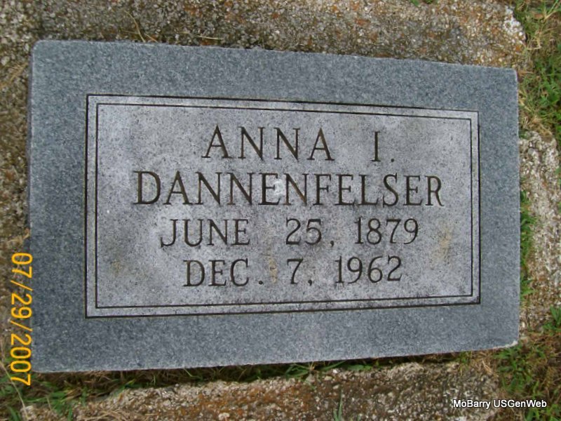 | DANNENFELSER, Anna I. (SUTTLES) | June 25, 1879 Leann, MO |