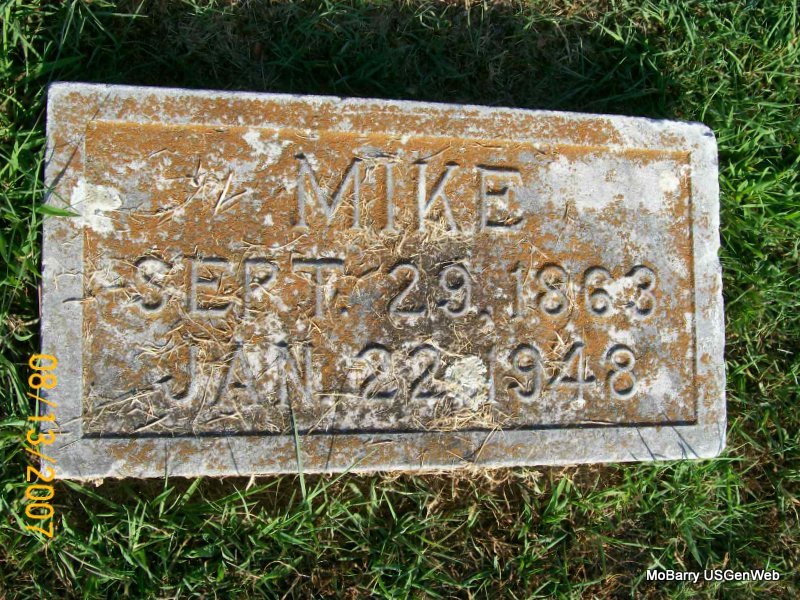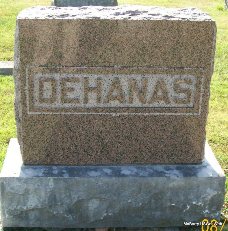 Research Note: Miami Resident Many Years Succumbs at 84 Miami, Okla., Jan. 23 - Mike DeHanas, 84 years old died at 4:40 o'clock yesterday afternoon at his home, 608 A. Street, northeast. He had been a resident of Miami for 41 years, moving here from Monett. Survivors include four sons, Everett DeHanas and Jack DeHanas of Miami, Jesse DeHanas of Springfield and Albert DeHanas of Oklahoma City; three daughters, Mrs. R. E. Hoover of Amory, Miss., Mrs. J. O. Griffith of Fort Worth, Tex., and Mrs. Ann Lou Mandville of Farmersville, Calif.; nine grandchildren and 13 great-grandchildren. Funeral services will be conducted at 9:30 o'clock Saturday morning at the Cooper chapel by the Rev. B. M. Jackson. Burial will be in the I.O.O. F. Cemetery in Monett. His wife was Lydia Ellen Terrell. He second married Mary Elizabeth Ray. - Dehanas Plot Stone | Online Obit Census Phyllis Long Photo Jay Trace |