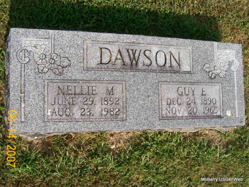 | DAWSON, Nellie M. | June 29, 1892 | Aug. 23, 1982 | SSW: Guy E. | Photo Jay Trace |