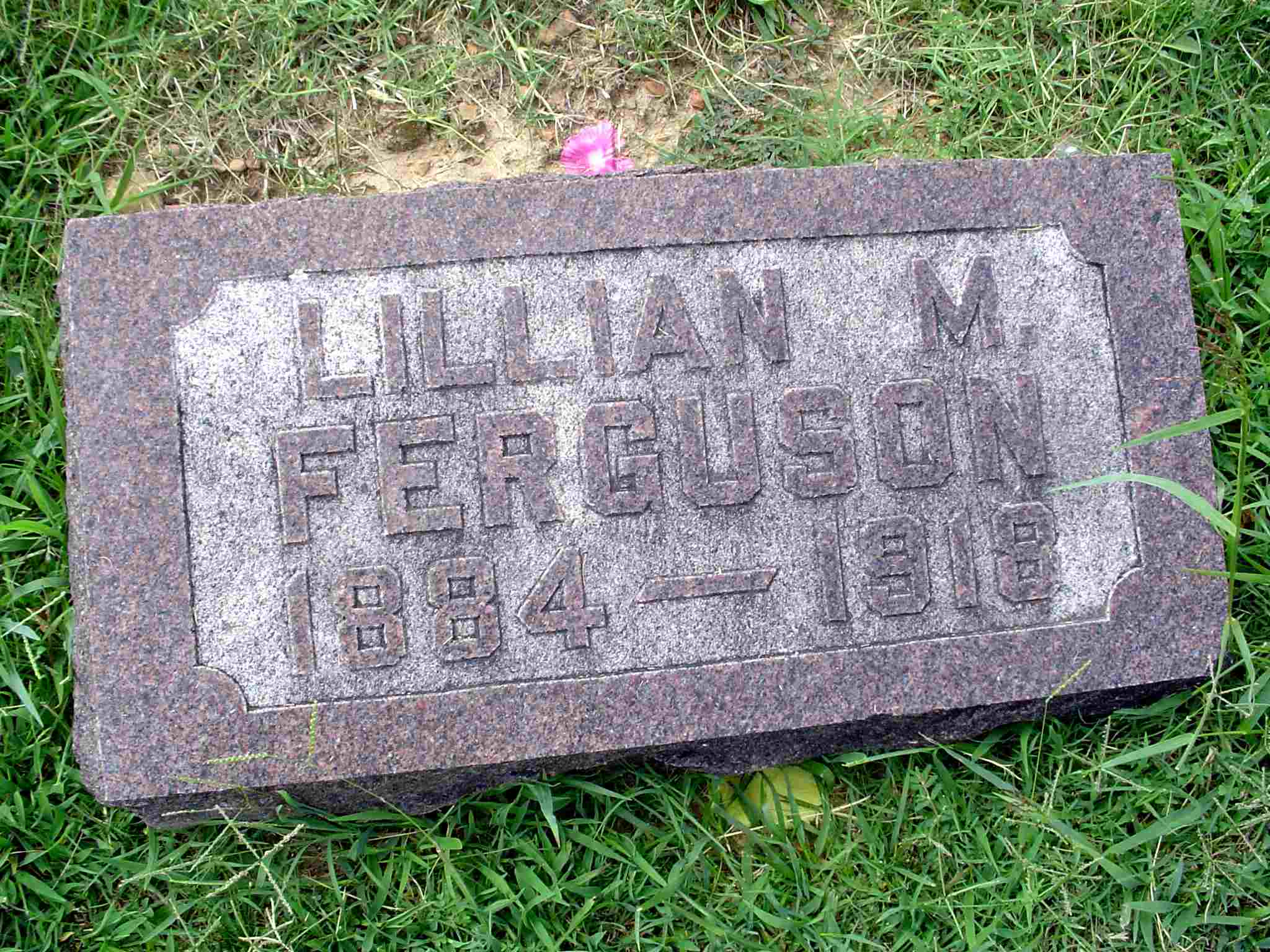 Research Note: Her stone has 1884 as the birth year but the death certificate has 1885. Her father is listed as Thomas Meador, born MO, and her mother as Louisa Withers, born MO. The informant was Dr. L. H. Ferguson, Monett, MO. - Cassville Republican, Thursday, Oct. 17, 1918 - Mrs. Lillian May Ferguson, wife of Dr. L. H. Ferguson, died at 11:15 o'clock, Sunday morning, October 13, of pneumonia and complications. She had been ill since Wednesday. Funeral services were held at the residence, 811 Frisco avenue, Monday afternoon, conducted by Rev. W. A. Todd, pastor of the Baptist church. Interment was made in the Odd Fellows cemetery. Lillian Meador was born near Monett, May 14, 1885. She was married to Dr. L. H. Ferguson in October, 1907. She was the mother of four children, the first born, a girl having died. Two small sons and a daughter are living. She is also survived by her mother or Mrs. Eason Vermillion, of Purdy; four sisters, Mrs. E. W. Wallen, Mrs. Ellie Hudson, Mrs. Will Brite and Miss Myra Meador; and three brothers, Willis and Elmer Meador of Monett and Dan B. Meador, who is now in France. Mrs. Ferguson was a beautiful young woman, well loved by all who knew her. Monett Times - Another Photo | Photo Death Certificate Donna Cooper Online Newspapers Phyllis Long Photo Jay Trace |