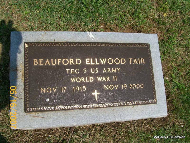 | FAIR, Beauford Elwood | Nov. 17, 1915 Diamond, Newton Co., MO |