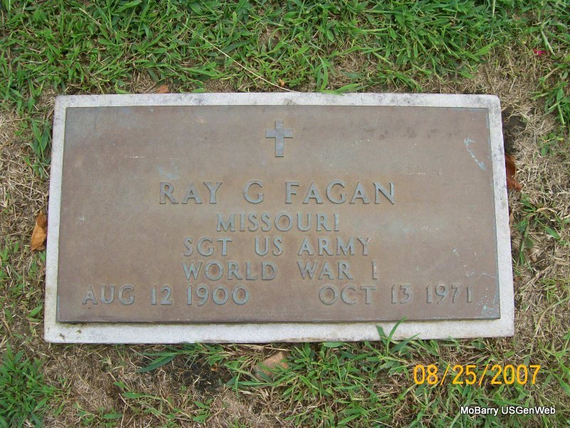 SSW: Dimple B. - Son of James Fagan and Harriet Jane Swartzwelder. - Military Stone - Inscription: "MISSOURI SGT US ARMY WORLD WAR I" | Census Phyllis Long Photo Jay Trace |