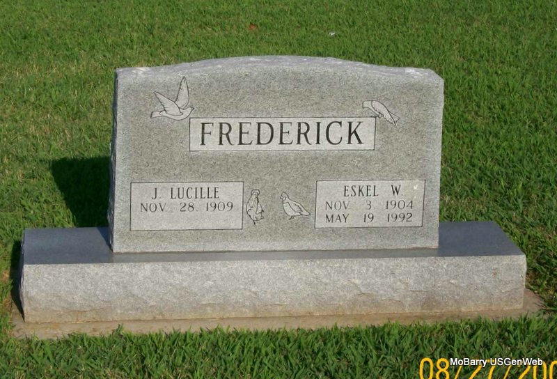 Eskel W. - Research Note: Dau. of H. A. and Kathryn (Jones) Ellis, married Eskel W. Fredrick on June 16, 1926, in Antlers, OK, and he preceded her in death May 19, 1992. She was preceded in death by two daughters, Wylene Thomas in 1986 and Joyce Lea in 1998; and one grandson, Terry Thomas. | Monett Times, Dec. 22, 2000 Mary Homesley Photo Jay Trace |