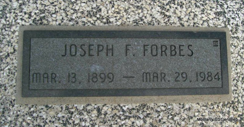| FASTBEND, John A. | 1894 | June 28, 1945 Harrisonville, Cass Co., MO |