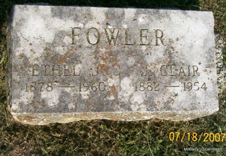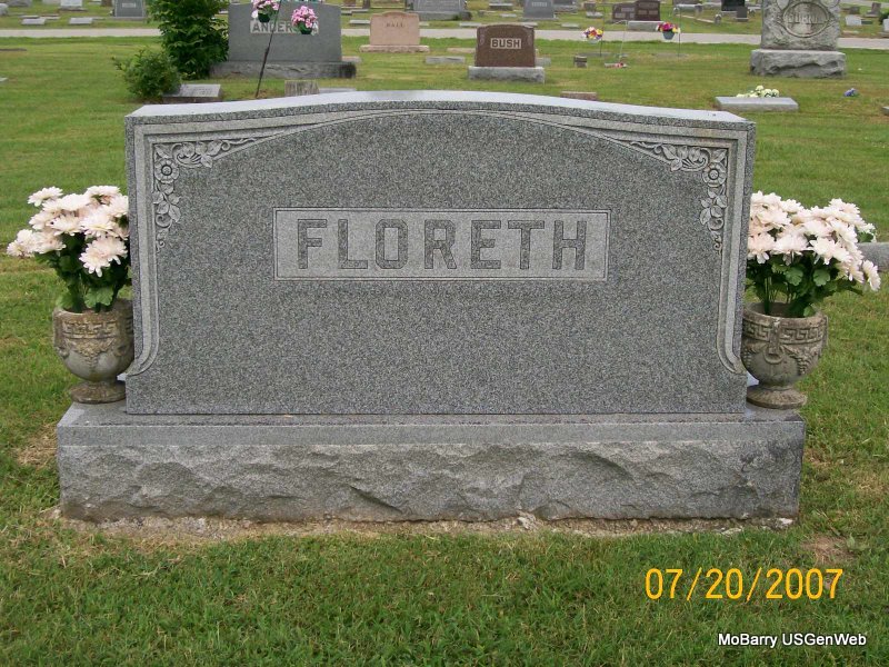 Research Note: According to his death certificate his wife was named Ethel Furlow. He was age 76 years, 8 months and 12 days old at the time of his death. His usual address was 209 8th St., Monett, Barry Co., MO and was a retired Frisco Conductor for the railroad. The cause of death was chronic myocarditis and he had suffered with it for 1 year. He was in the hospital 11 days before he died. His father was Richard G. Furlow and his mother's name was unknown to the informant. Kenneth R. Furlow (son), Monett, MO, was the informant. His mother was Rebecca Drucilla Nordin. The cemetery log book has him listed without a stone in the old section, in block 43 in lot 1, in grave 1 in the SW 1/4, buried next to her husband who is listed as E. Furlow and in grave 2. Elijah Furlow, age 19, married Thursie Vanvidell Smith, age 14, on Jan. 17, 1894 in Barry Co., MO. Elijah Furlow, age 30, married Bertha Maxwell, age 25, on July 20, 1904 in Monett, Barry Co., MO. He last married Ethel Lucille Davis. NO STONE | Death Certificate IOOF Log Book Donna Cooper MO Marriage Records Census Phyllis Long |