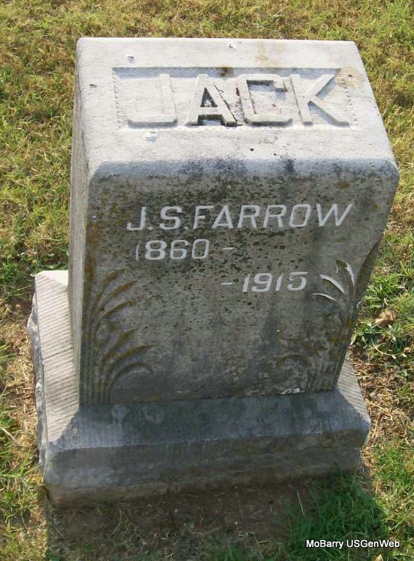 Research Note: According to his death certificate his father was Philimon B. Farrow, born Spartanburg, SC and his mother was Elizabeth Crook, born Spartanburg, SC. He was a conductor on a railroad passenger train. His birth date is given as Nov. 3, 1861 and not 1860 as the stone reads. He was age 53 years 4 mos. and 16 days old at the time of his death, which makes the 1861 date possibly correct. Burial was Mar. 20, 1915 in IOOF in Monett. John C. Farrow, Monett, MO, was the informant. His wife was Mary Catherine Miser. | Death Certificate Donna Cooper Photo Jay Trace |