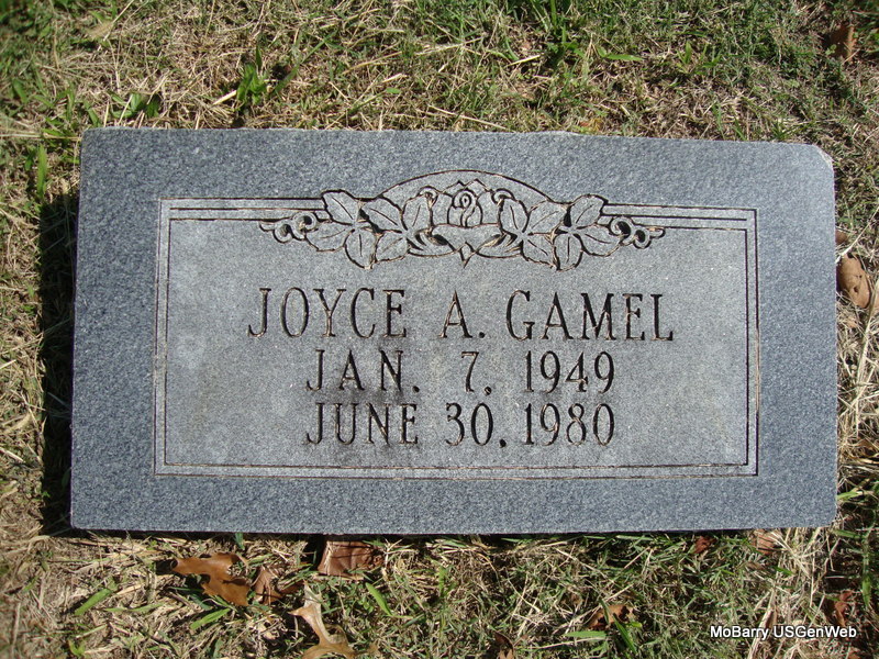 | GAMEL, Joyce A. | Jan. 7, 1949 | June 30, 1980 | Research Note: She is buried in the 2nd section, block 73, single grave, grave 12. Lakin was the funeral home. SSDI gives her last benefit as Monett, Barry Co., MO. SSN issued in IA 1966. | IOOF Log Book SSDI Phyllis Long Photo Connie Schmidt |